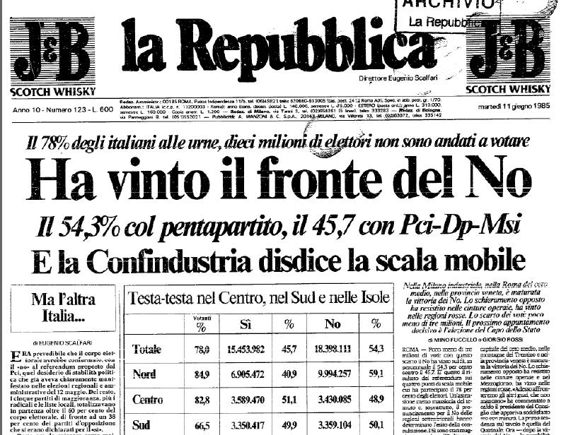 Con l’accordo del 3 luglio 1992, durante il governo Amato, il sindacato rinunciò definitivamente, dopo 46 anni, alla scala mobile, per evitare di alimentare la spirale inflazionistica (aumento dei prezzi, aumento degli stipendi, maggiore propensione al consumo, aumento dei prezzi e così via).