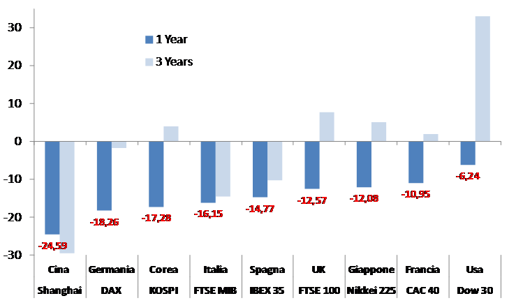 Se in molti casi sono stati annullati i guadagni realizzati nel 2017, il confronto a 3 anni mostra un rendimento di medio termine positivo di oltre il 30% per gli Stati Uniti.